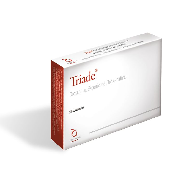 | Composizione | Triade®H è un integratore alimentare a base di 300 mg di Diosmina, 300 mg di Esperidina e 300mg di Troxerutina e 12 mg Vitamina C. |